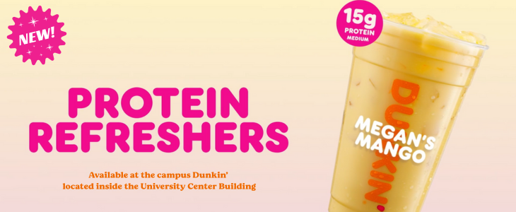 Located inside the University Center Building, Dunkin’ offers handcrafted espresso drinks, all-day breakfast sandwiches, delicious donuts and more. Fresno State runs on Dunkin’.